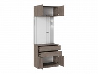Разнообразие решений для хранения позволяет разместить всю сезонную, повседневную и другую одежду. Мягкая банкетка и прямоугольное зеркало дополняют набор, создавая ощущение уюта.