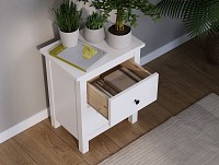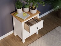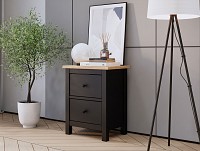 Выдвижные ящики помогут хранить различные мелочи, которые должны быть под рукой: электронную книгу, очки или зарядку для телефона. На поверхности можно разместить небольшой ночник или графин с водой. Модель достаточно компактная, а значит, подходит для ограниченного пространства.