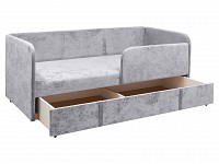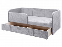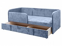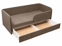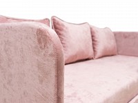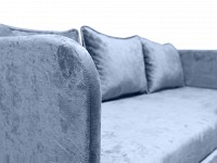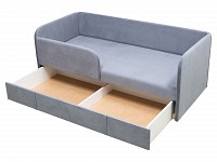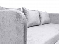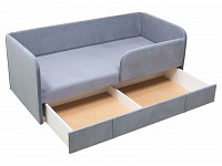 Скругленные углы делают модель более комфортной и безопасной, а тонкие подлокотники помогают сэкономить пространство. Выкатной ящик создает дополнительное место для хранения, что особенно актуально для небольших комнат. Благодаря мягким подушкам на диване можно расположиться по-настоящему удобно и уютно.