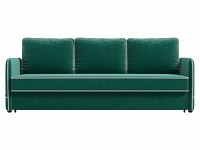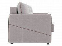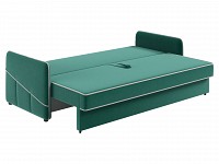 Обивка приятна на ощупь, при этом легко чистится от загрязнений, а контрастный кант эффектно подчеркивает контуры модели. Узкие подлокотники экономят пространство комнаты. Со всех сторон используется основная ткань, поэтому диван можно установить в любой точке комнаты.