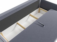 Благодаря надежному раскладному механизму диван быстро трансформируется в удобную двуспальную кровать, которая подходит для ежедневной эксплуатации. Просторный бельевой короб значительно расширяет возможности для хранения. Внутри достаточно места для постельных принадлежностей, сезонных вещей или теплых пледов.