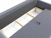 На время сна диван легко превращается в ровную кровать. Раскладной механизм прост в эксплуатации и подходит для ежедневного использования. Для постельных принадлежностей или сезонных вещей есть вместительный короб.