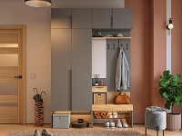 Открытые секции идеально сочетаются с распашными, что создает ощущение симметрии и строгости линий. Набор позволит хранить самое необходимое на виду, а редко используемые предметы гардероба — убрать за глухие створки.