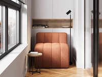 Модель со всех сторон смотрится привлекательно, поэтому ее можно установить не только вдоль стены. Отсутствие подлокотников экономит пространство и дает возможность объединить две или несколько банкеток в небольшой диван.