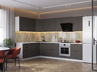 Функциональные элементы помогут содержать в порядке всю необходимую утварь. Фрезеровка на фасадах придает интерьеру особый шарм и индивидуальность. Матовая поверхность устойчива к влаге и царапинам, а также отлично скрывает отпечатки пальцев и следы пыли.