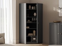 Вместительная конструкция с полками позволяет рационально расположить книги, посуду, коробки с аксессуарами и личные вещи. Глухая дверца с рамочным фасадом оснащена петлями с доводчиком, что гарантирует бесшумную эксплуатацию.