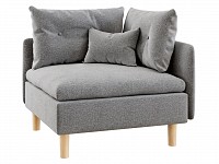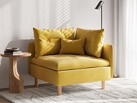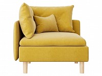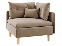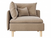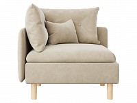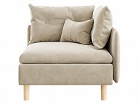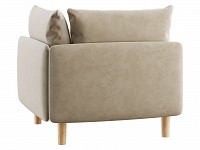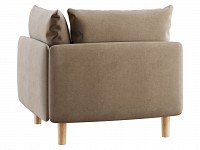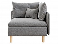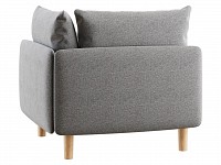 Удобное сиденье дополнено тонкими подлокотниками и мягкими подушками. Отдыхать в таком кресле приятно и комфортно. Благодаря высоким деревянным ножкам модель органично смотрится даже в небольшой гостиной. Кресло можно комбинировать с другими элементами коллекции.