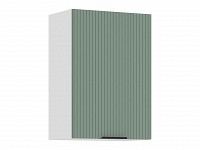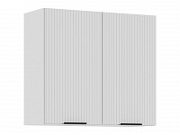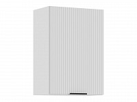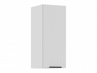 Внутри можно расставить посуду для сервировки, контейнеры со специями, а также разместить компактную кухонную технику. Узор с вертикальными линиями на фасадах гармонично сочетается с узкими стильными ручками.