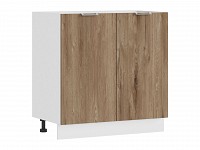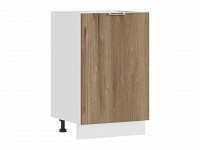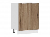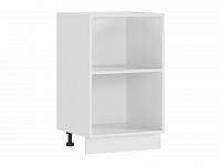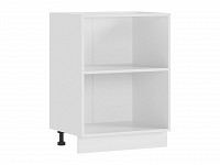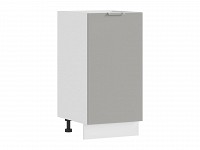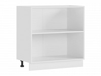 Полка делит внутреннее пространство на отделения, где удобно хранить самые разные поварские принадлежности: от кастрюль и тарелок до небольшой техники и запаса продуктов. Гладкие фасады просты в уходе и устойчивы к повреждениям. Наличие цоколя защищает мебель от попадания пыли и грязи.