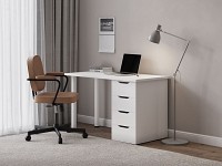 На столешнице можно разместить стационарный компьютер, ноутбук и настольную лампу, а в выдвижных ящиках — хранить документы и другие необходимые предметы. Стул регулируется по высоте, а благодаря колесикам его легко передвигать по комнате.