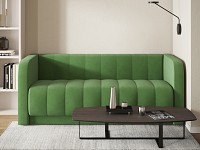 Невысокие спинка и подлокотники образуют единую линию, а вертикальная строчка служит лаконичным декором обивки. Такой дизайн не перегружает обстановку и смотрится органично в разных стилях меблировки. В просторной комнате или совмещенной кухне-гостиной диван можно использовать для зонирования. Удобный уклон сиденья и спинки позволяет равномерно распределить нагрузку и обеспечивает комфортную посадку.