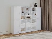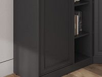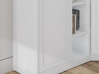 Открытые ниши позволяют разместить на виду книги, посуду, декор и другие важные вещи. Распашные шкафы создают удобство при распределении предметов обихода. Изящные рамочные фасады будут уместны в разных стилях меблировки.