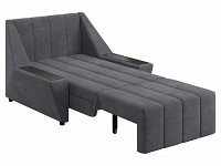 Широкие подлокотники оснащены специальными накладками, которые можно использовать в качестве мини-столешниц. В разложенном виде модель образует ровное спальное место с высоким изголовьем. Небольшой бельевой короб создает дополнительное пространство для хранения вещей.