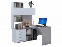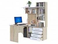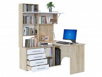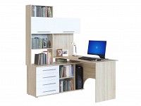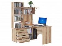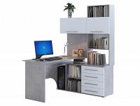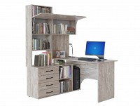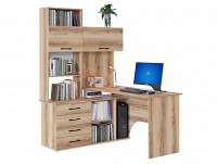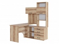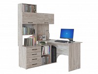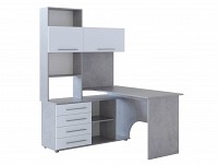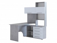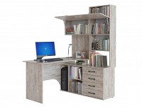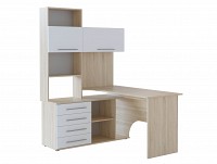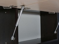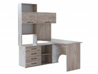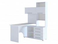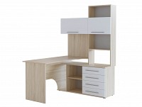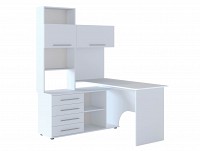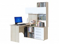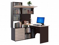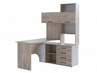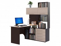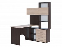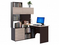 Высокий стеллаж имеет открытые и два закрытых отделения, дверцы которых открываются вверх. Модель позволяет организовать максимально удобную и функциональную рабочую зону как в домашнем кабинете, так и офисном помещении.