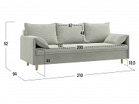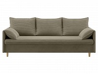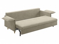 Подушки вдоль подлокотников создают дополнительный комфорт, когда диван сложен, и легко откидываются в стороны на время сна. Спинка обита лицевой тканью, поэтому модель можно установить в любой части комнаты, а не только вдоль стены.