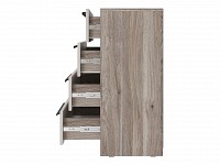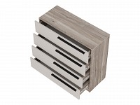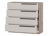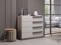 Модель с удобными выдвижными ящиками подходит для хранения белья, одежды и аксессуаров. На поверхности можно разместить небольшой телевизор или осветительные приборы, растения и рамки с фотографиями. Матовые фасады с продолговатыми ручками добавляют эстетики пространству комнаты.