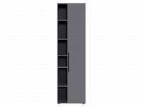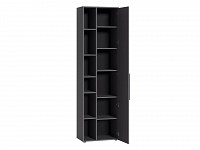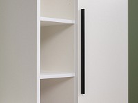 Компактную модель легко интегрировать в ограниченное пространство. Открытые полки позволят удобно разместить предметы декора, книги и другие вещи, которые хочется держать на виду. За глухой распашной дверцей можно хранить одежду и текстиль. Гладкий фасад устойчив к царапинам и долго сохраняет первоначальный вид, а пластиковые опоры защищают напольное покрытие от повреждений.