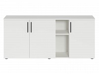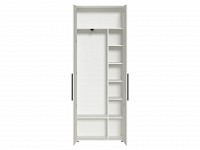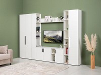 Функциональный набор элементов поможет создать уют даже на ограниченной площади. Сочетание открытых полок и глухих распашных фасадов позволит удобно распределить самые разные предметы: от одежды до книг и декора. Прямые формы без лишних деталей станут визитной карточкой комнаты.