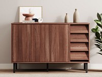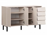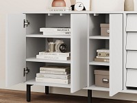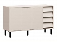 Комбинация распашных секций и выдвижных ящиков позволяет поддерживать порядок в любых вещах. Сочетание лаконичных фасадов и металлических опор гармонично смотрится в современной обстановке и не загромождает интерьер лишними деталями.