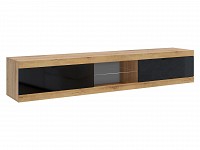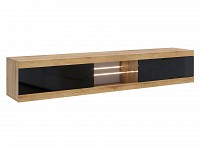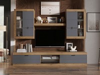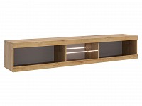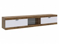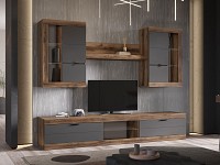 За откидными дверцами находятся просторные секции. Лаконичная фурнитура придает мебели сдержанность и монолитность. Подсветка в открытой нише по центру — изюминка модели, которая поможет разнообразить любой интерьер.