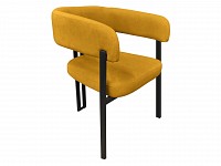 Изящная спинка плавно переходит в подлокотники, создавая элегантный силуэт модели. Мягкое сиденье и металлические ножки — эффектное сочетание материалов, которое смотрится актуально в большинстве современных интерьеров. Обивка выполнена из практичной износостойкой ткани.