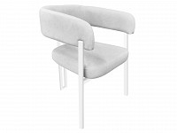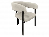 Изящная спинка плавно переходит в подлокотники, создавая элегантный силуэт модели. Мягкое сиденье и металлические ножки — эффектное сочетание материалов, которое смотрится актуально в большинстве современных интерьеров. Обивка выполнена из практичной износостойкой ткани.