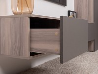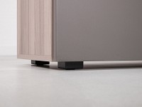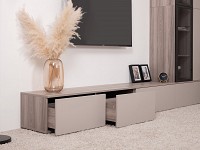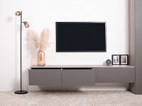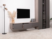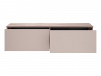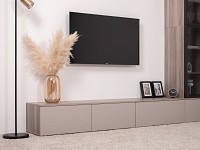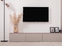 Широкая поверхность позволит установить монитор с большой диагональю, а внутренние отделения подойдут для хранения аксессуаров, гаджетов и аппаратуры. Отсутствие ручек поддерживает тренд на минимализм в оформлении мебели. Тумбу можно закрепить к стене или расположить на полу.