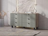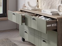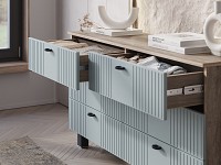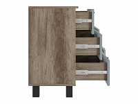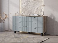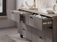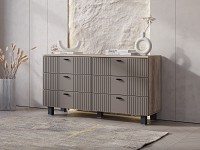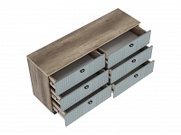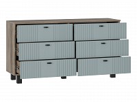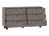 Модель идеально подходит для узкой комнаты или прихожей. Матовые фасады с фрезеровкой гармонично дополняют корпус в древесном декоре. Внутри удобно хранить одежду, важные документы, бытовые мелочи и другие вещи, которые не хочется оставлять на виду.