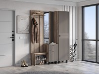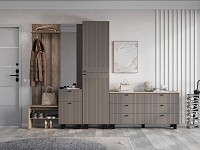В тумбе найдется место под аксессуары и важные мелочи, а на вешалке — для повседневной одежды и сумок. Небольшая полка для обуви освободит пространство на полу. Гармоничное сочетание разных оттенков и текстур смотрится актуально и очень привлекательно.