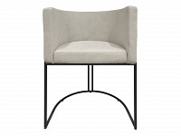 Мягкая спинка, плавно переходящая в подлокотники, делает модель особенно удобной. Глубина сиденья позволяет с комфортом расположиться за столом. Металлические ножки повторяют плавный силуэт и обеспечивают устойчивость конструкции.