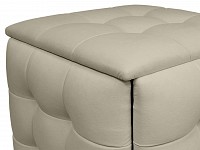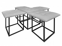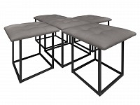 В сложенном виде модель представляет собой компактный пуф в виде объемного куба. На него можно присесть в прихожей, гостиной или на кухне, а также использовать как банкетку для домашней одежды возле кровати. Раскладной механизм превращает конструкцию в пять отдельных табуретов с мягкой обивкой, которые разместят целую компанию.