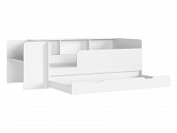 Открытые стеллажи создают ощущение свободного пространства, а кровать с дополнительным выдвижным спальным местом разместит гостя. Лаконично оформленная мебель не утяжеляет интерьер.