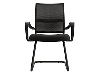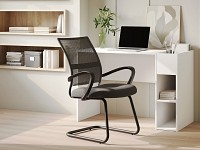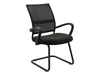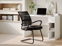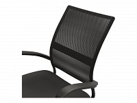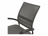 Сетчатая спинка обеспечивает поясничную опору и свободно пропускает воздух. Полозья дополнены подпятниками для защиты напольного покрытия.