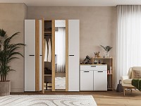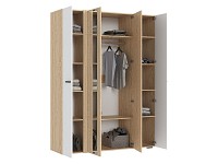 Для одежды из деликатных тканей предусмотрена ниша со штангой. Отделения с полками подходят для футболок, джинсов, постельного белья и пледов. Зеркальные фасады увеличивают пространство, а сочетание матовых поверхностей и светлого дерева украшает современный интерьер.