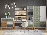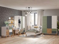 Белый шелк / Темно-серый / Дуб Вотан / Олива