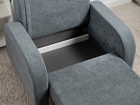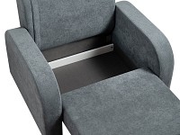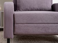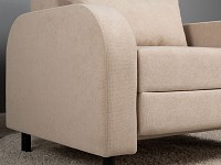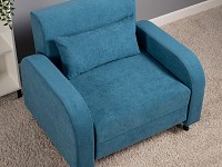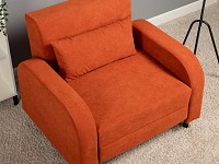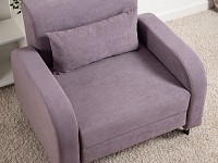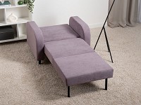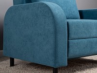 Плавная форма подлокотников, а также мягкие линии спинки и сиденья создают гармоничный и актуальный силуэт. Со всех сторон кресло смотрится эстетично, поэтому его можно использовать для зонирования пространства. Простой механизм быстро превращает модель в односпальную кровать. Износостойкая ткань с защитой от влаги долго сохраняет привлекательный вид, а небольшие ножки облегчают уборку.