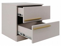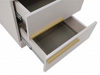 Компактные выдвижные ящики помогут хранить под рукой зарядное устройство, крем для рук или очки. Элегантная эстетика модели подчеркнута изящными продолговатыми ручками в оттенке сатинового золота.