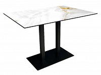 Оригинальная форма опоры делает модель стильным акцентом обеденной группы. Царговый пояс обеспечивает прочность и долговечность конструкции. Стеклянное покрытие облегчает уход за мебелью.