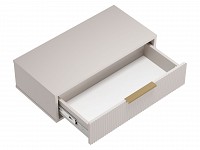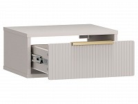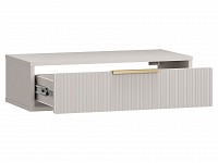 Парящая конструкция экономит пространство и создает визуально легкую обстановку. В выдвижных ящиках удобно разместить косметику, украшения и аксессуары. Рельефный декор и контрастная фурнитура формируют эффектный облик набора.