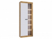 Модель идеально выполнит функцию библиотеки, а также поможет хранить аксессуары, посуду и предметы декора. За глухой дверцей удобно спрятать личные вещи и разные бытовые мелочи. Сочетание фактур стекла и дерева создает необычные акценты меблировки.