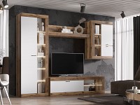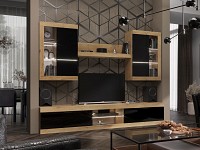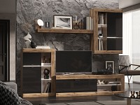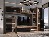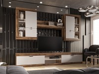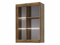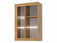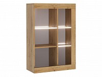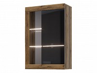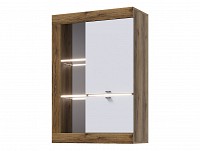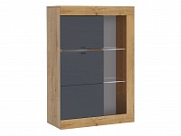 С одной стороны расположены стеклянные полки, что позволяет эффектно разместить красивую коллекцию посуды, книг и сувениров. Закрытая секция представлена отделением с распашными дверцами, которые скрывают содержимое от посторонних глаз.