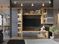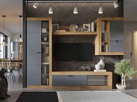Открытая полка украсит интерьер и позволит держать на виду полезные мелочи. За глухим фасадом удобно хранить личные вещи и предметы обихода. Сочетание разных оттенков и текстур создает уютное настроение.