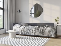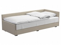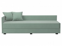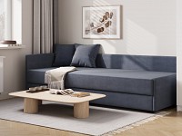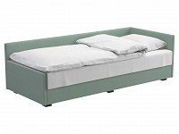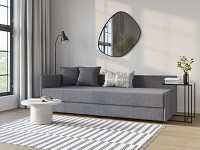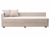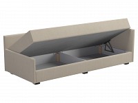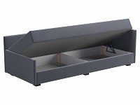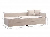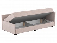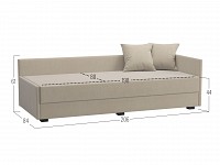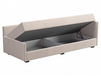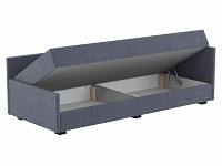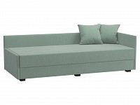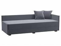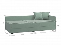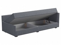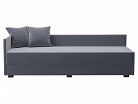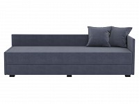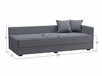 Сиденье с низкой спинкой и узким подлокотником дополнено двумя декоративными подушками, благодаря которым модель становится удобнее. Такой диван отлично подойдет для небольшой комнаты или студии. Ящик для хранения позволяет держать под рукой постельное белье или запасное одеяло.