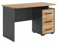Просторная столешница обеспечит место для ноутбука или стационарного компьютера, а три выдвижных ящика позволят поддерживать порядок в документах и канцелярии. Сочетание светлых матовых фасадов с фактурой дерева добавляет интерьеру нотки уюта и создает визуальную легкость.