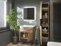 На полках за распашными дверцами удобно хранить косметику, полотенца и моющие средства, а в открытой нише будут гармонично смотреться элементы декора. Интегрированные ручки поддерживают тренд на минималистичный дизайн мебели.