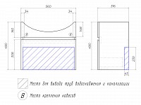для тумбы 60 см: 19 х 61 х 44,5 см;