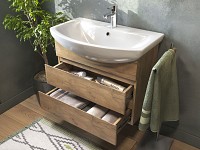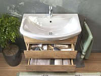 Конструкция подходит для хранения текстиля, моющих средств, косметики и других полезных мелочей. Интегрированные ручки создают лаконичный и современный дизайн мебели.