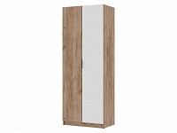 Внутреннее пространство включает отделение со штангой для плечиков и полки для повседневных и сезонных вещей. В дизайне фасадов использован геометрический узор, а в отделке корпуса — текстура дерева, что создает необычные акценты меблировки.