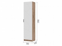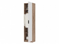 Внутри расположена евроштанга, которая позволит разместить длинную верхнюю или повседневную одежду. Полки подходят для хранения коробок и сложенных вещей. Необычный узор на дверце добавляет интерьеру индивидуальность.