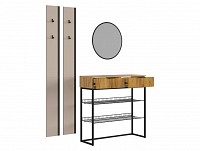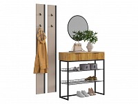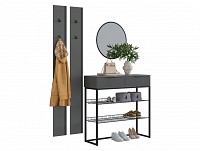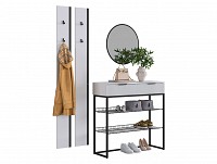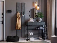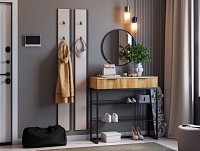 На вешалках с крючками удобно расположить повседневную одежду любой длины, а также сумки и аксессуары. Открытые ниши позволяют хранить до нескольких пар обуви. Металлические полки устойчивы к влаге и без труда очищаются от загрязнений. Выдвижная секция обеспечит место для полезных мелочей.